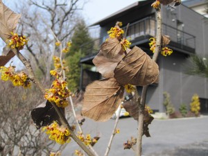昨日今日のぽかぽか陽気に誘われるように、店の駐車場の脇にある「マンサク」の木が、