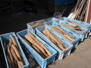 定休日の先日、長芋の産地山形村の親戚の家で、長芋の「種いも作り」の手伝いを