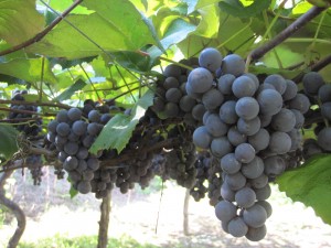叔父の家のぶとう棚には、収穫時期を迎えた「コンコード」・「ナイヤガラ」が実っていました。