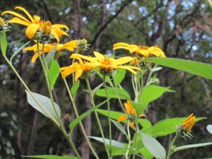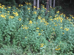 うちの敷地の一角に、2メートル以上に伸びたキクイモが、黄色の花を