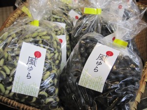 店内で、自家製黒大豆・くらかけ豆を販売しています。