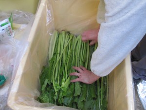 昨年と同じ量、13束(130㎏)の野沢菜を畑で収穫して、10㎏ごとの束にして、