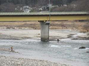 今日(2/16)から9/30まで、店の前を流れる犀川の渓流釣りが解禁となり、