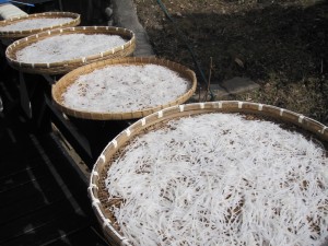 昨年収穫した大根が、まだたくさん残っていたので、切干大根用にと細く切って天日に干しました。保存食は手間はかかりますが、いざというときに重宝します。