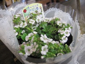 笑顔がすてきな「逢澤さん」が、かわいらしい「かすみ草」を