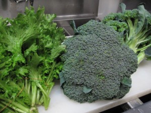 うちの畑で採れたブロッコリー・わさび菜・インゲンなどが、