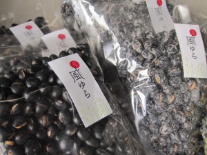 前回販売してたいへん好評だった、自家産の黒大豆と鞍掛豆、