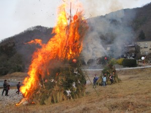 店の前を流れる犀川の河川敷で、今年も小正月に行われる伝統行事