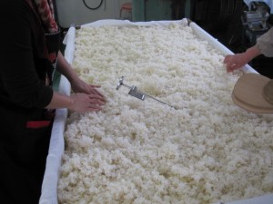 当店でいつも使っている、私の叔父の田んぼで収穫した米を炊いて麹を作る作業。