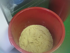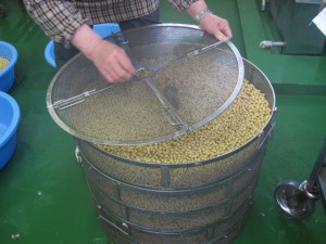 先日両親に選別してもらった、昨年収穫した大豆を水につけ一晩ふやかす。