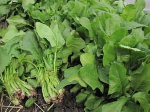 うちの畑の、ほうれん草や菜花が大きくなりました。