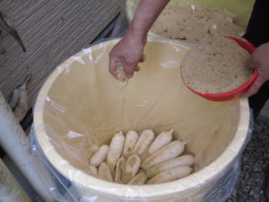 昨年の12月初めに漬けた野沢菜が食べ頃になり、お客様に